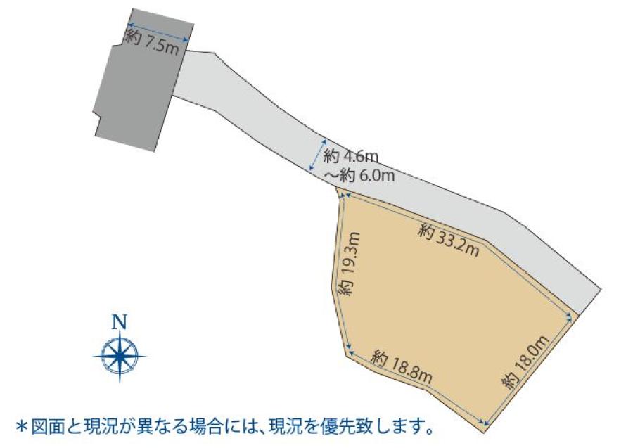 - 北西側幅員約7.5mの公道に私道(持分あり)を介して約5.0m接する。