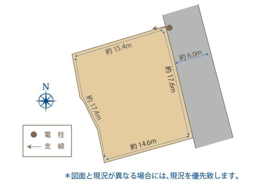 - 東側約6.0mの公道に約17.6m接する。