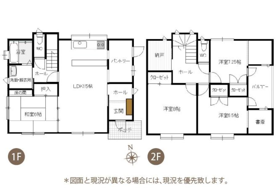 (1F LDK、和室、パントリー 2F 洋室×3、書斎、納戸)